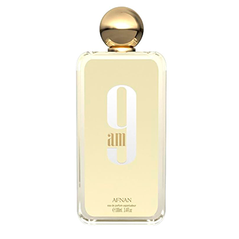 9am de Afnan es una fragancia de la familia olfativa para Mujeres. Las Notas de Salida son limón (lima ácida), mandarina, cardamomo y pimienta rosa; las Notas de Corazón son lavanda, flor de azahar del naranjo, manzana verde y rosa; las Notas de Fondo son almizcle, musgo, cedro y pachulí.